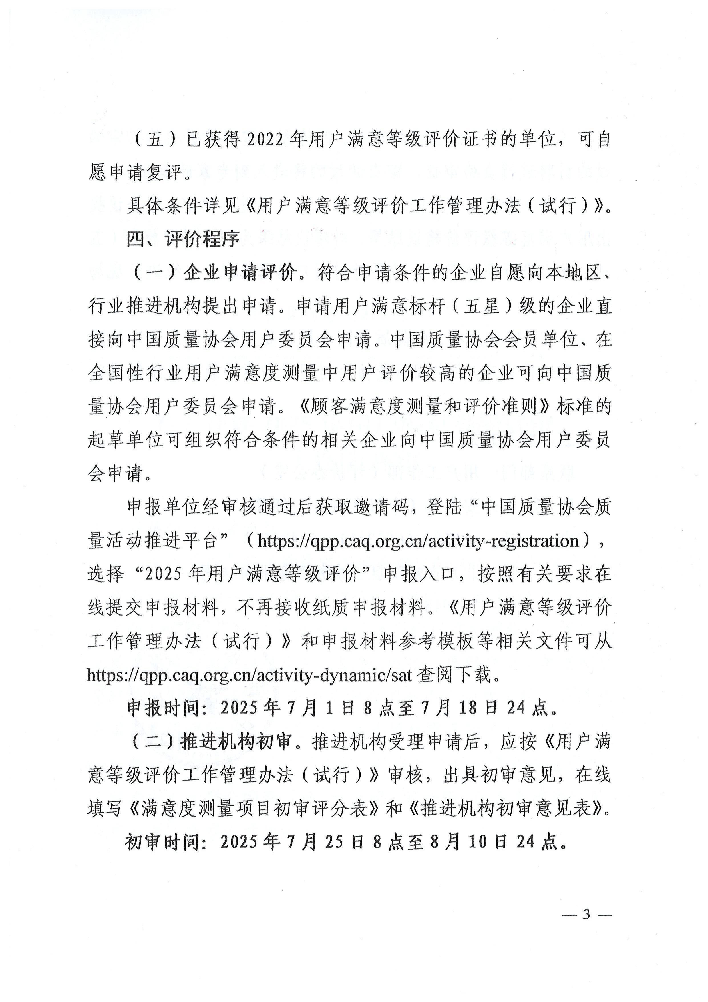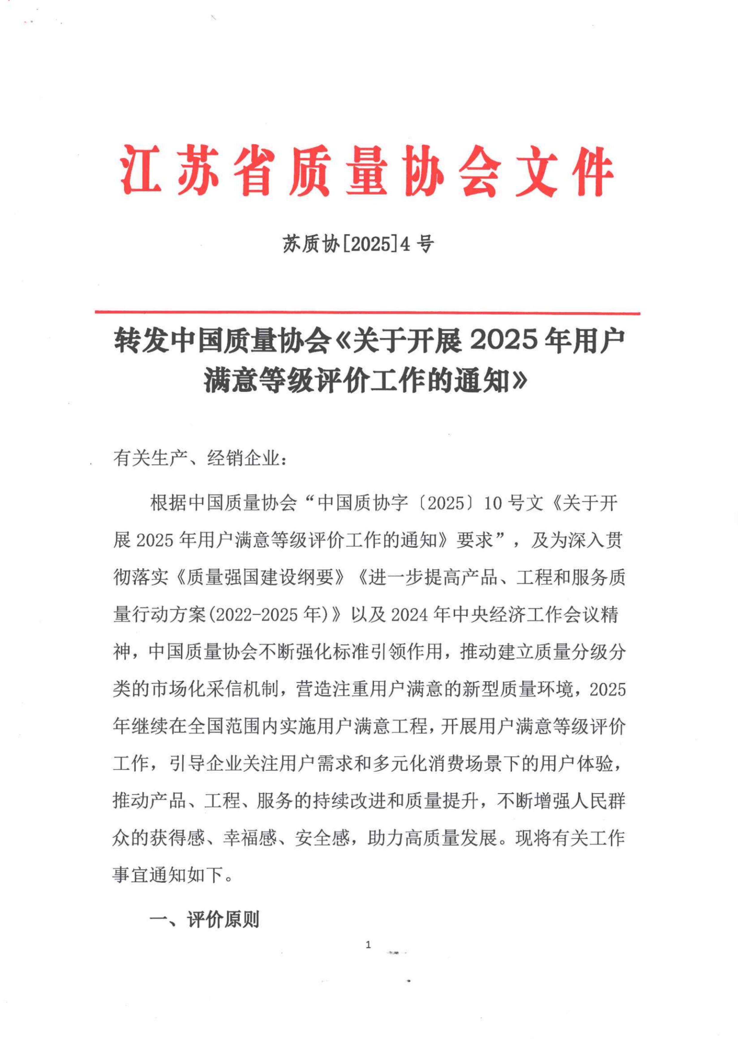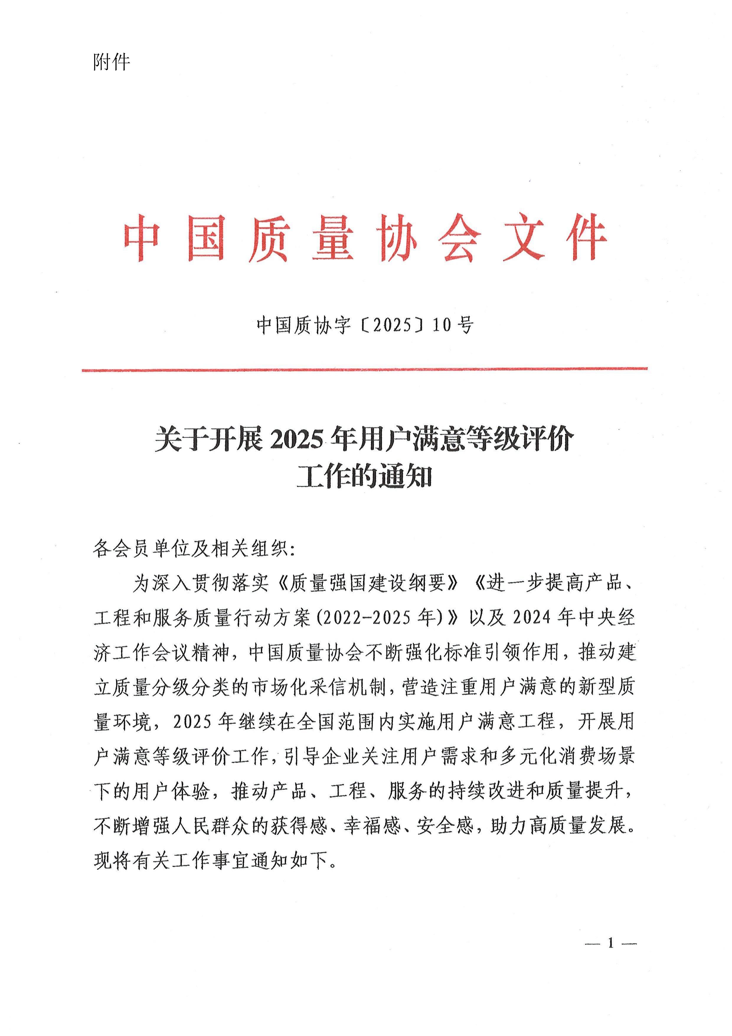 转发中国质量协会《关于开展2025年用户满意等级评价工作的通知》