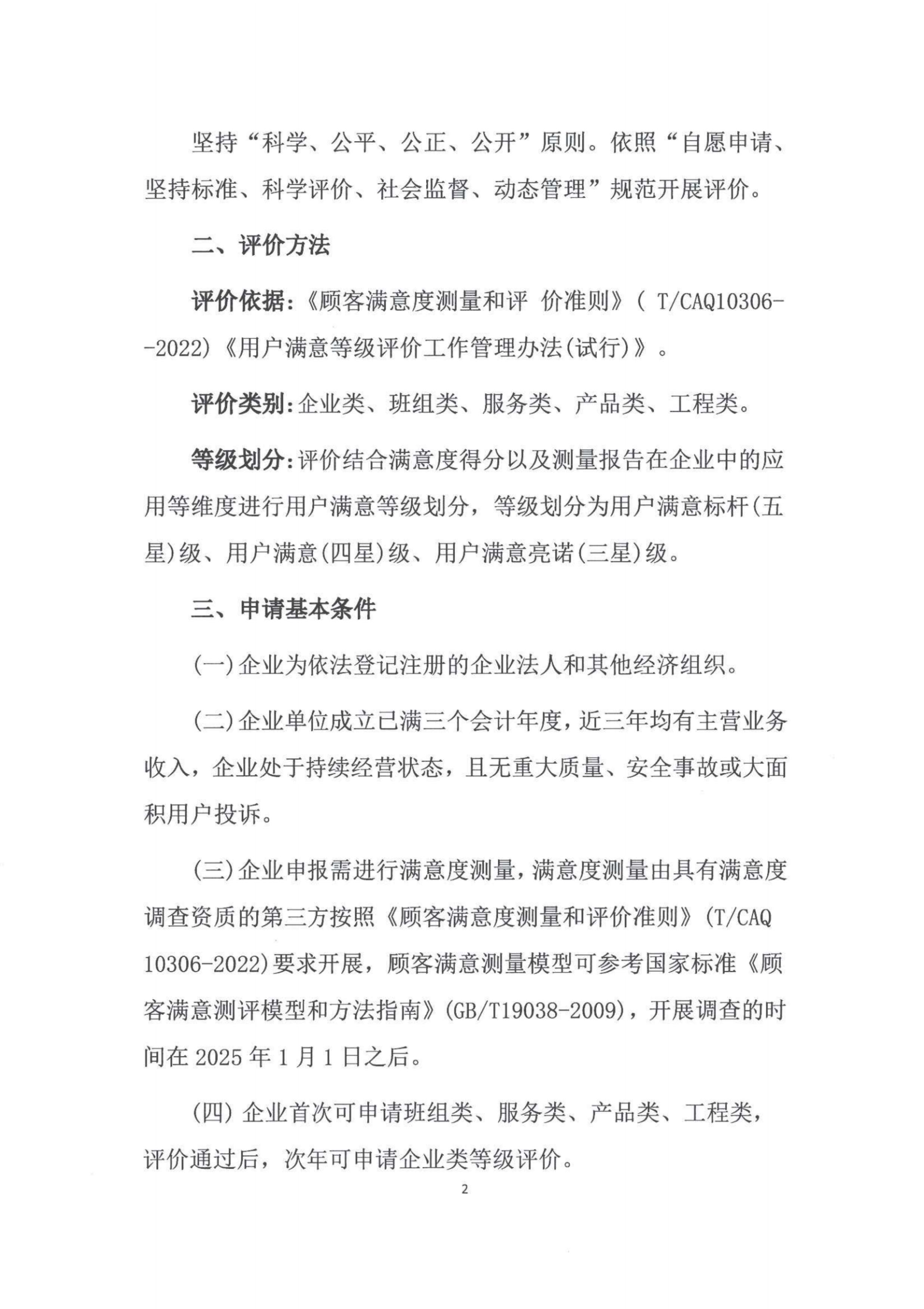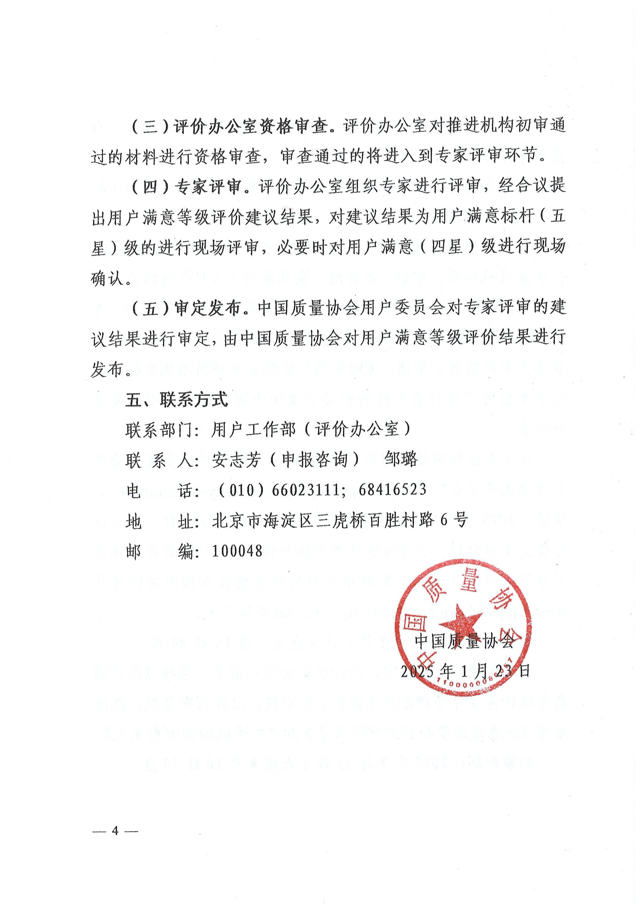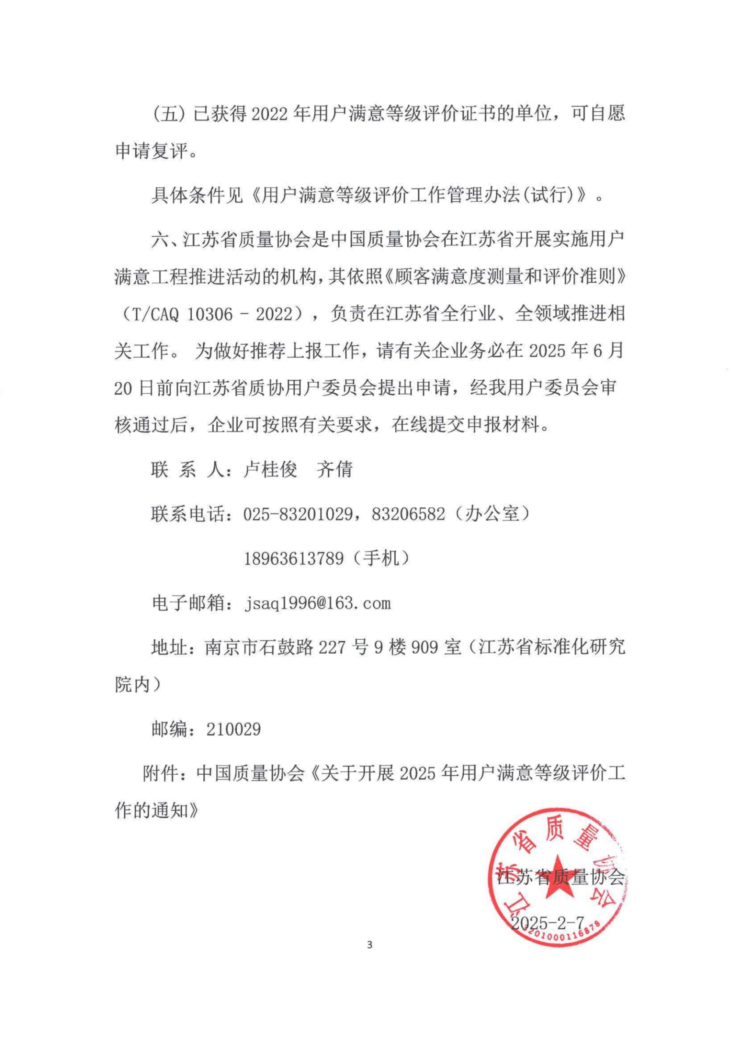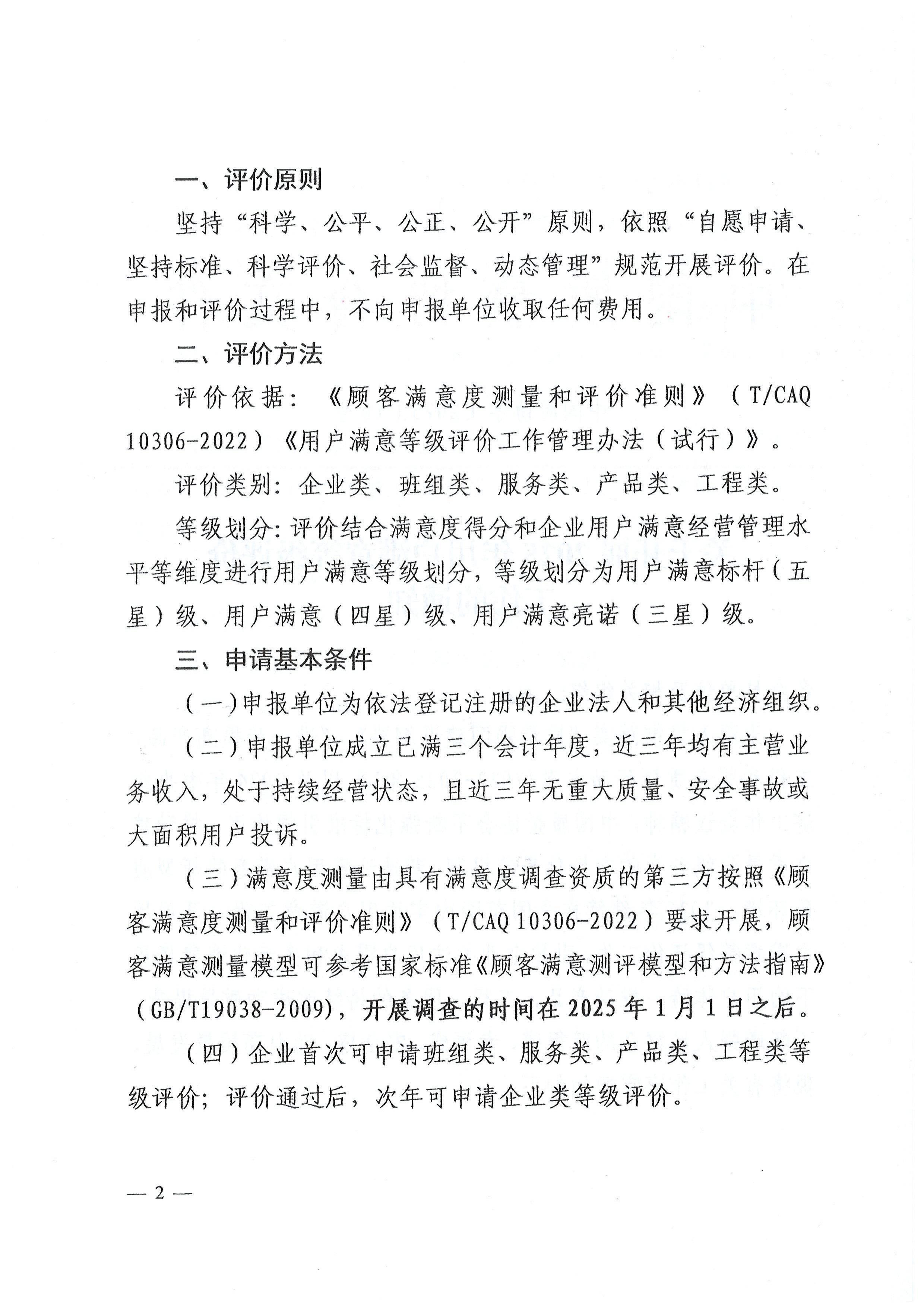 转发中国质量协会《关于开展2025年用户满意等级评价工作的通知》