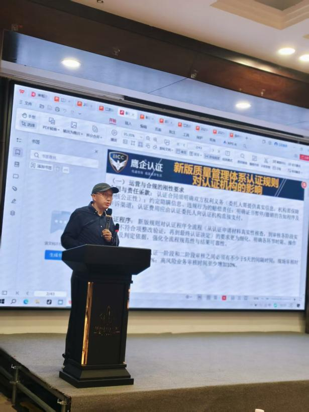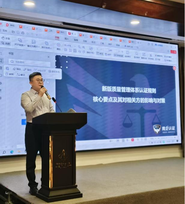 上海翼舶港信息技术有限公司联合创始人、鹰企管家平台创始人兼董事长官勇则聚焦新版《质量管理体系认证规则》。他介绍,2025年8月31日发布的新版认证规则将于2026年1月1日实施,是2016版规则近十年后的系统性革新,在审核员工作量、机构责任压实等方面提出新要求。官勇结合自身20余年行业经验,梳理规则核心变化,为机构过渡期衔接与后续合规运营提供实操建议。