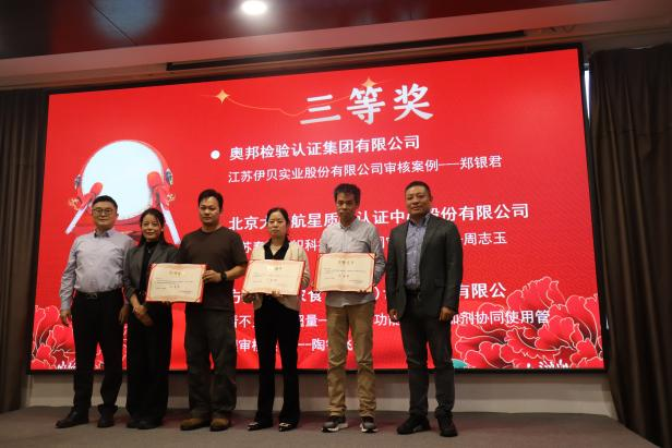 三等奖:《“看不见”的超量——同一功能食品添加剂协同使用管理审核案例》—方圆标志农食(江苏)认证检测有限公司(作者:陶银飞)、《江苏泰达纺织科技有限公司审核案例》—北京大陆航星质量认证中心股份有限公司(作者:周志玉)、《江苏伊贝实业股份有限公司审核案例》—奥邦检验认证集团有限公司(作者:郑银君)。