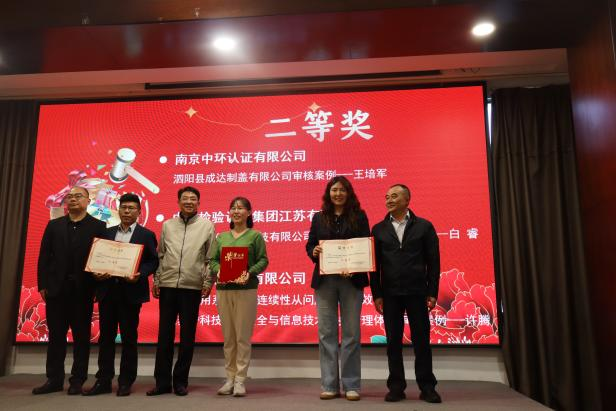 二等奖:《泗阳县成达制盖有限公司审核案例》—南京中环认证有限公司(作者:王培军)、《先微精艺(苏州)科技有限公司管理体系认证审核案例-中国检验认证集团江苏有限公司(作者:白睿)、《保障矿用系统服务连续性 从问题整改到效能提升——江苏**科技信息安全与信息技术服务管理体系审核案例》—江苏天圭认证有限公司(作者:许腾)。