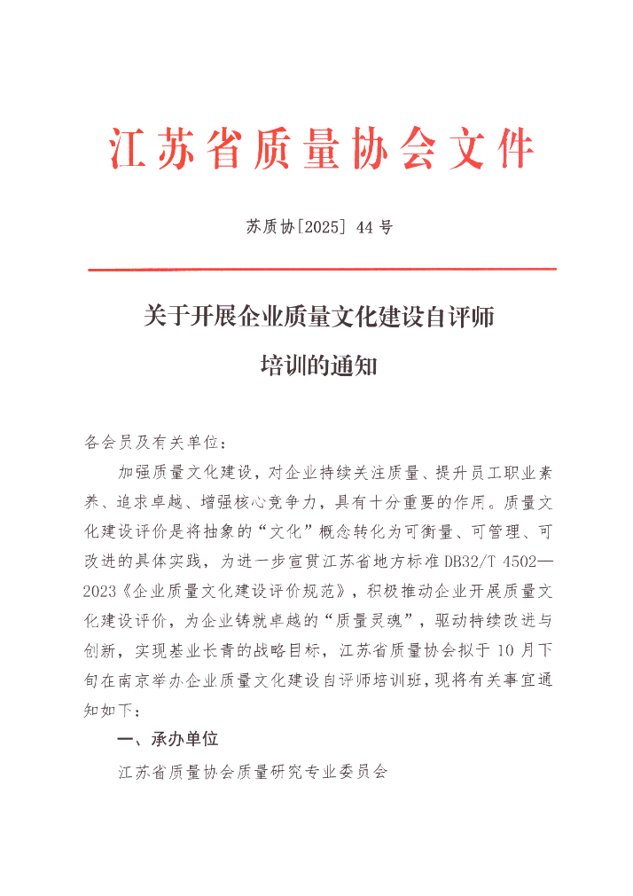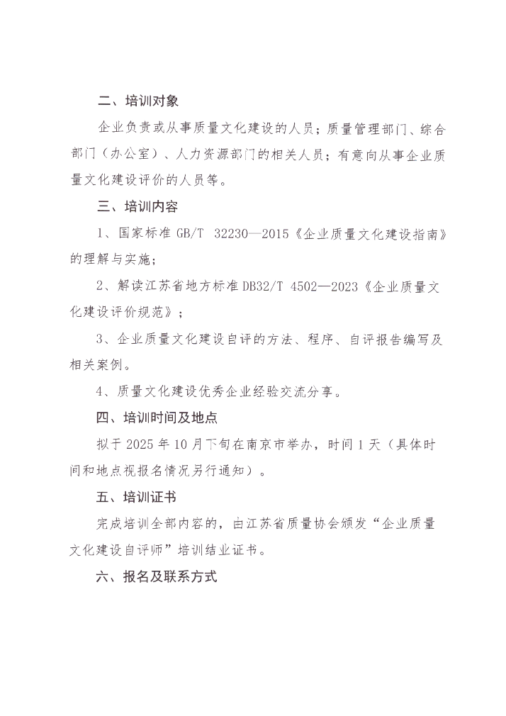 关于举办卓越绩效自评师及质量奖申报 培训班的通知