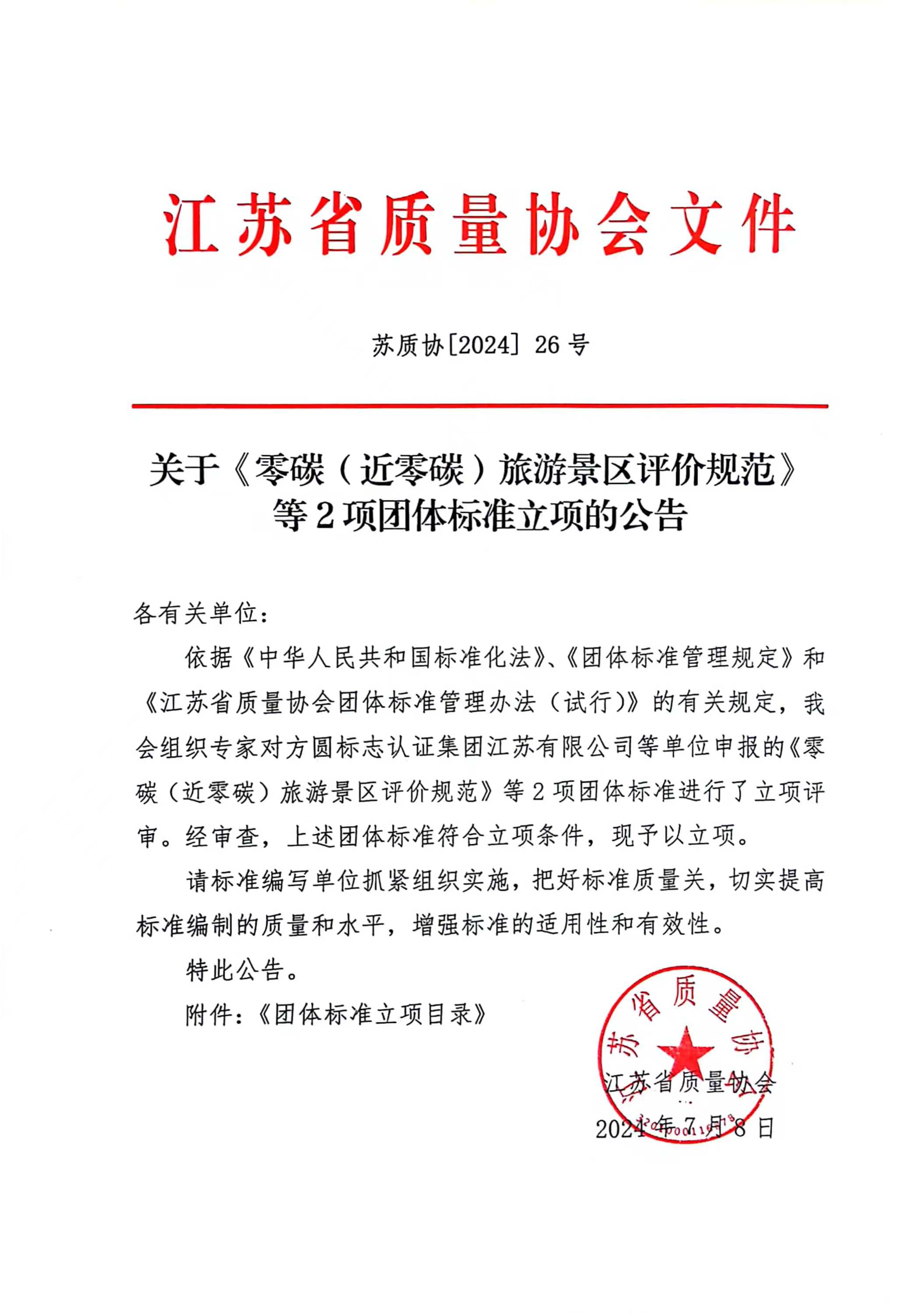 关于《零碳(近零碳)旅游景区评价规范》等2项团体标准立项的公告