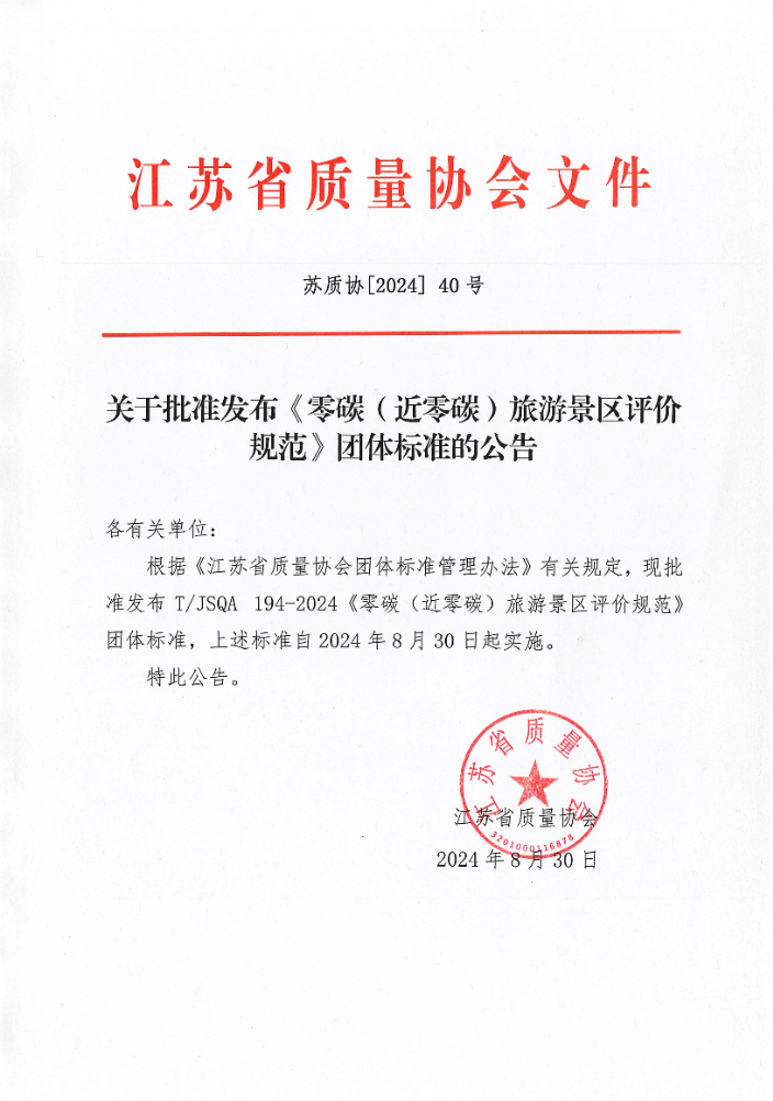 关于批准发布《零碳(近零碳)旅游景区评价规范》团体标准的公告