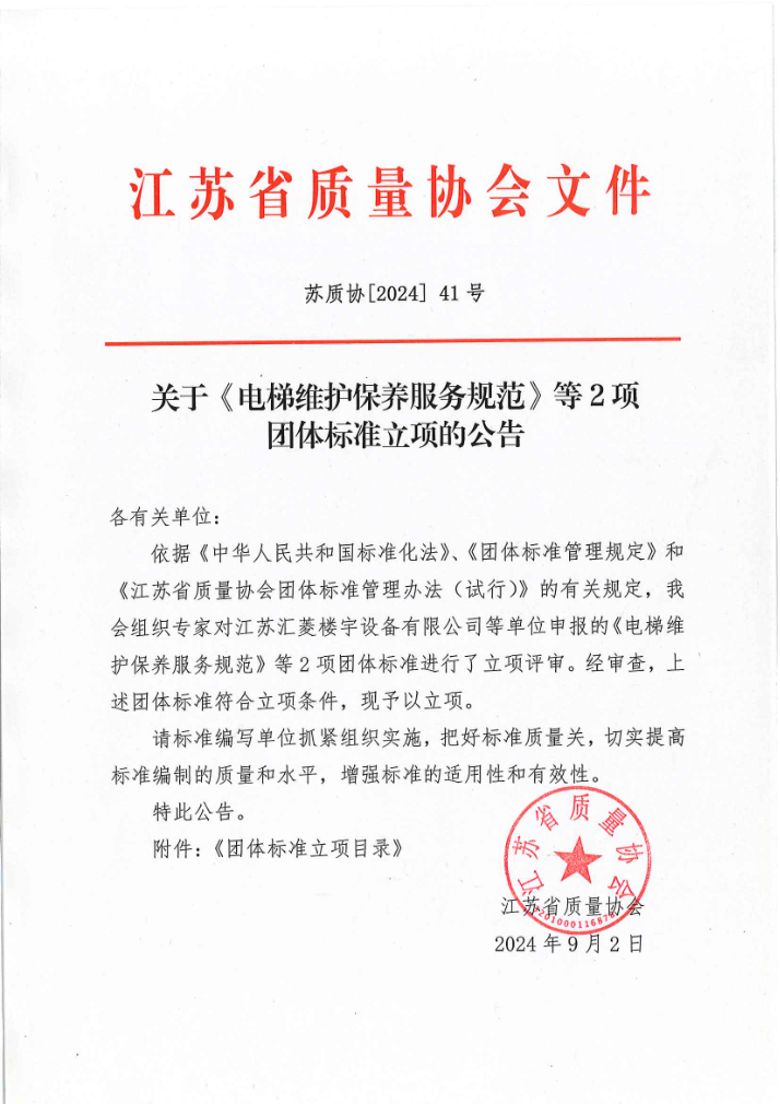 关于《电梯维护保养服务规范》等2项团体标准立项的公告