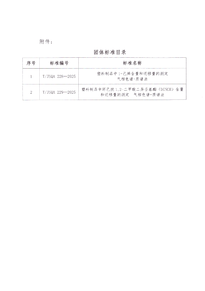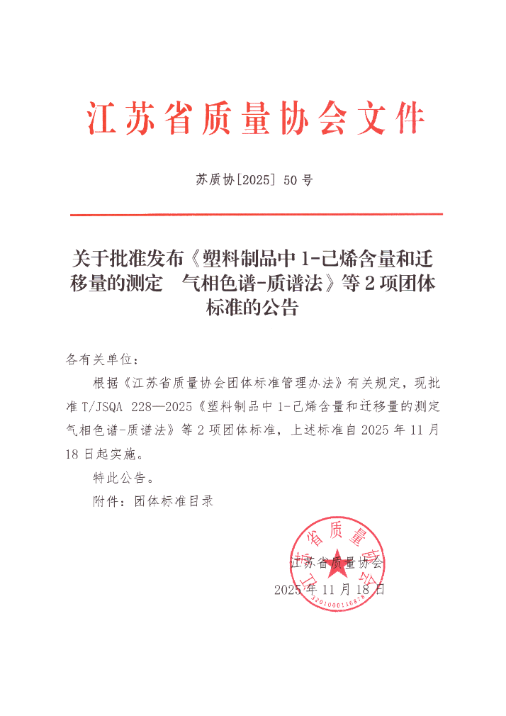 关于批准发布《塑料制品中1-己烯含量和迁移量的测定 气相色谱-质谱法》等2项团体标准的公告