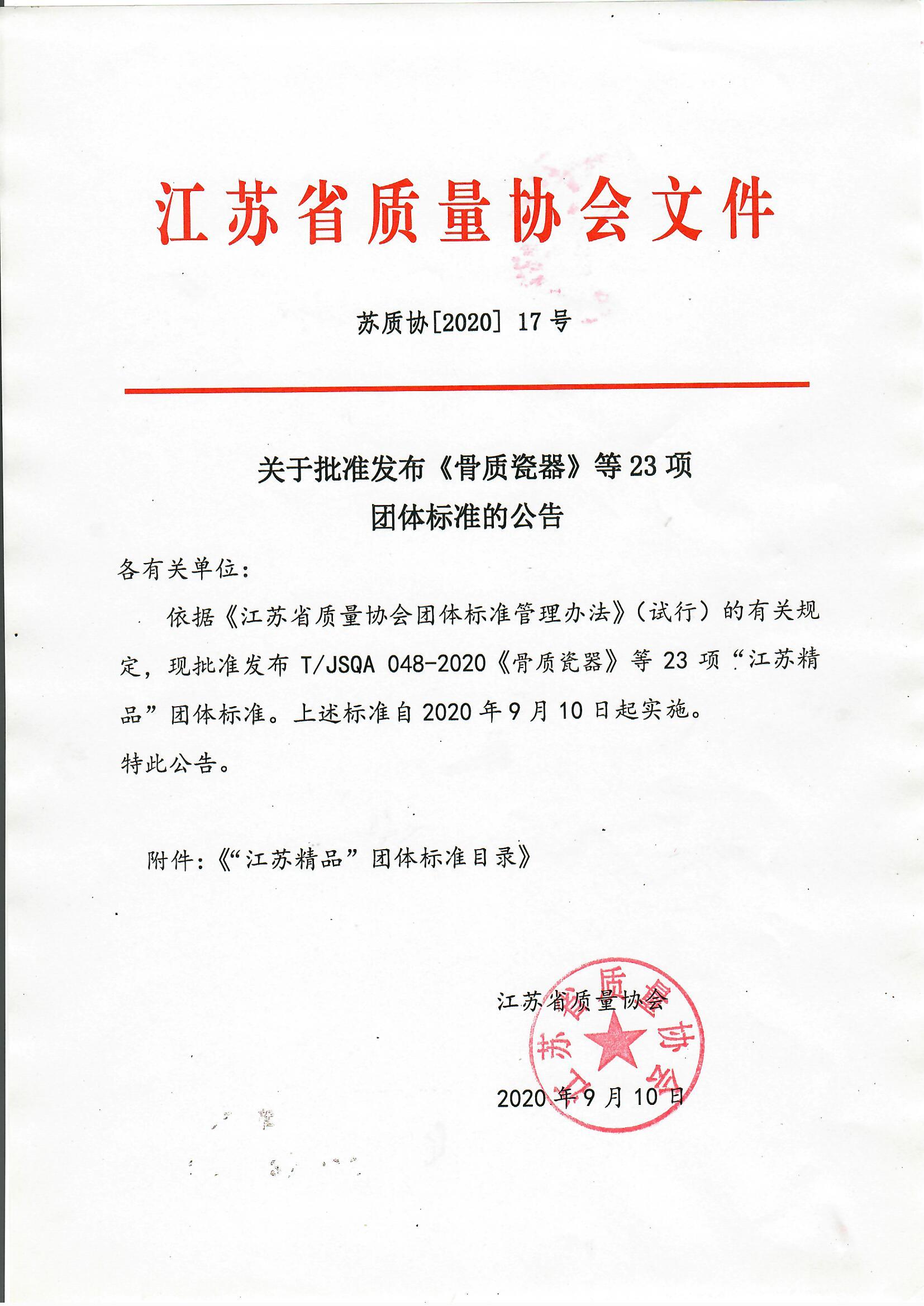 关于批准发布《骨质瓷器》等23项 团体标准的公告
