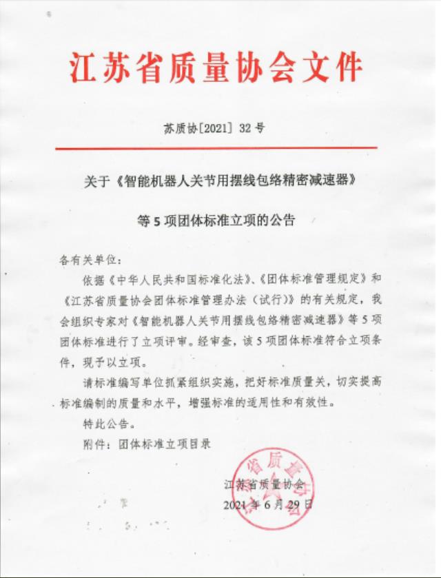 关于《智能机器人关节用摆线包络精密减速器》 等5项团体标准立项的公告